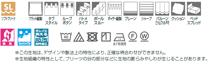 SL ソフトプリーツ加工[形態安定加工]カーテンの裾の広がりを抑える加工を施した縫製仕様です。